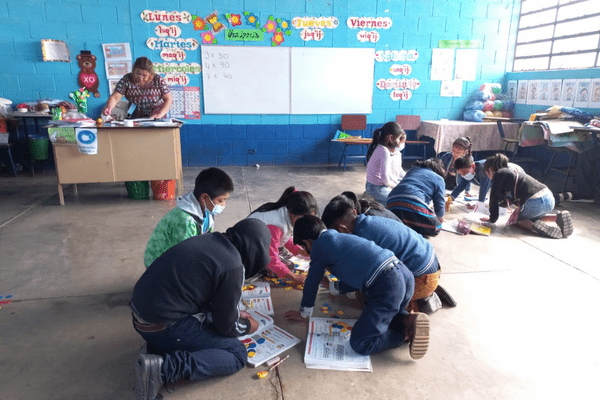 Mathieu, colaborador pedagógico de los programas de Educación de Enfants du Monde, conoce bien el país, su cultura y su gente. Lleva varios años colaborando con el programa y ahora lo hace con CIPREVICA (Centro de Investigación para la Prevención de la Violencia en Centroamérica). La semana pasada realizó una visita de seguimiento cualitativo del programa de educación bilingüe e intercultural con profesorado y clases del departamento de Chimaltenango. Esta región, donde la mayoría de los/las habitantes son descendientes de los/las mayas kaqchikeles, se encuentra al sur de la capital, Ciudad de Guatemala.