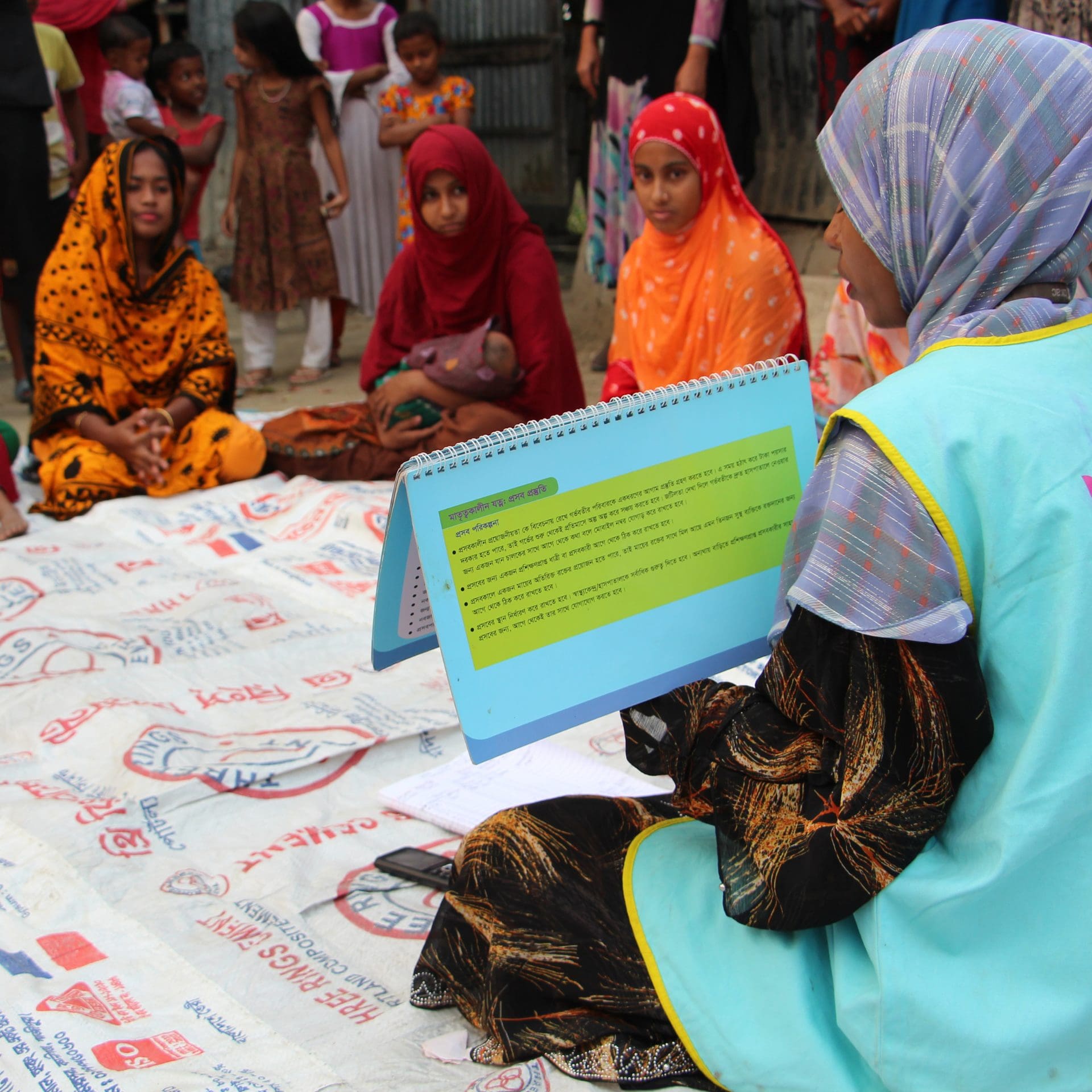 L’éducation à la santé était un axe central du projet, notamment grâce à des actions de sensibilisation sur la santé maternelle et néonatale, les soins respectueux et les droits à la santé. Ces thématiques, encore peu connues de la population au Bangladesh ont été diffusées auprès de plus de 37 000 personnes grâce à des séances éducatives destinées aux femmes enceintes, des forums impliquant la communauté et des activités d’information menées dans les marchés, mosquées et salons de thé.